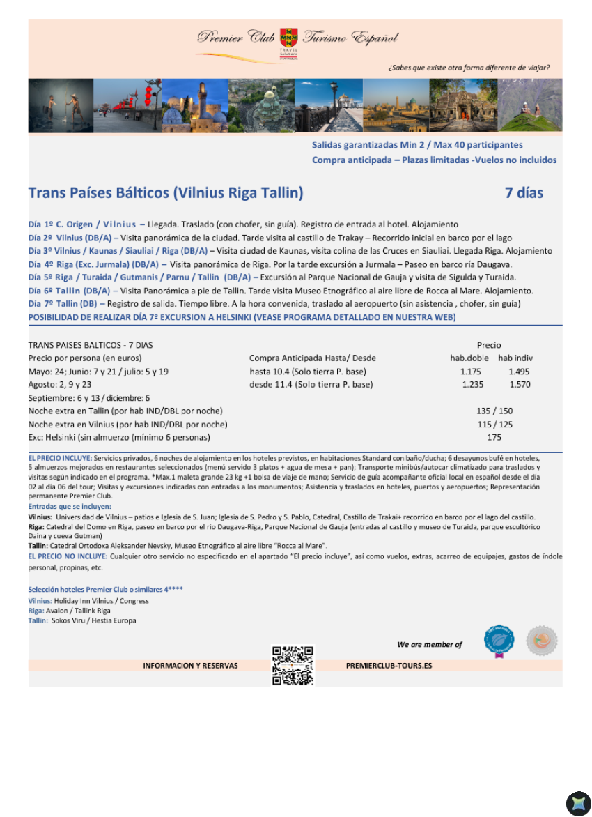 Trans Países Bálticos 7 días - Salidas garantizadas - Vuelos no incluidos -Precio desde 1.175€